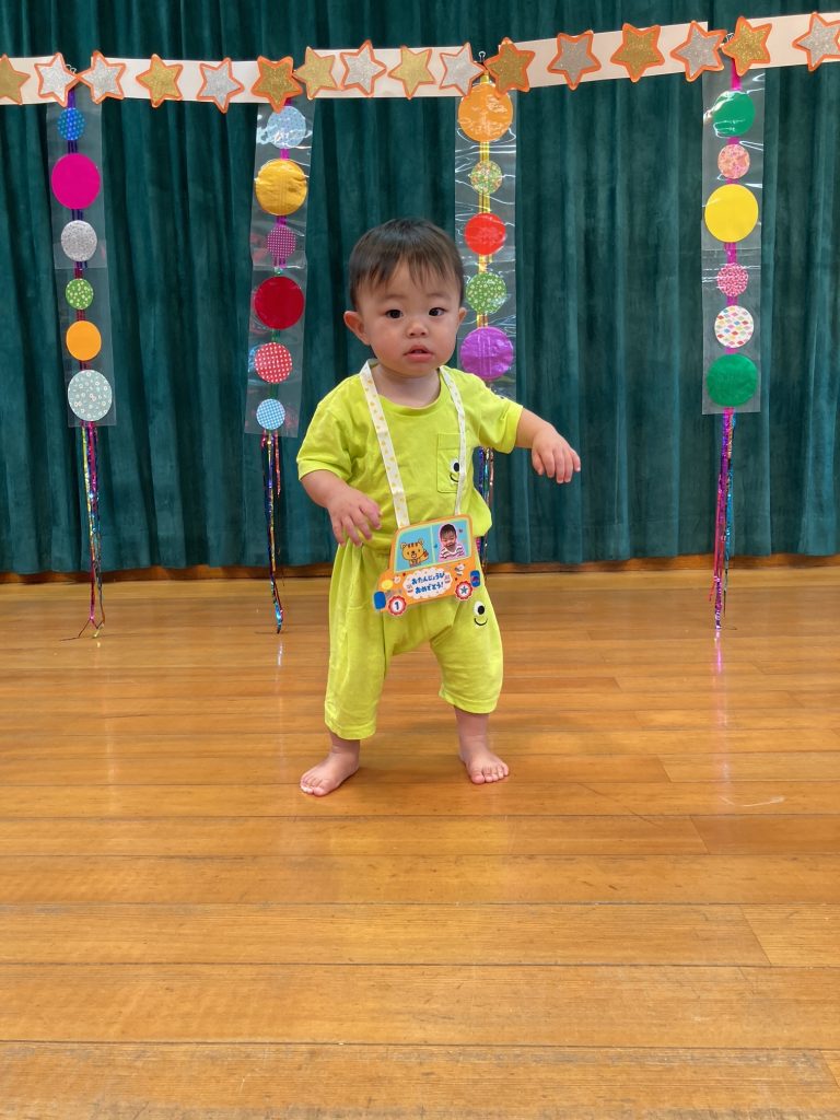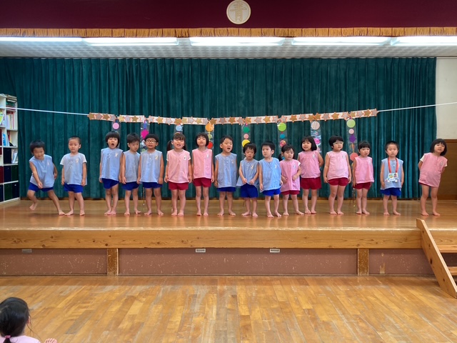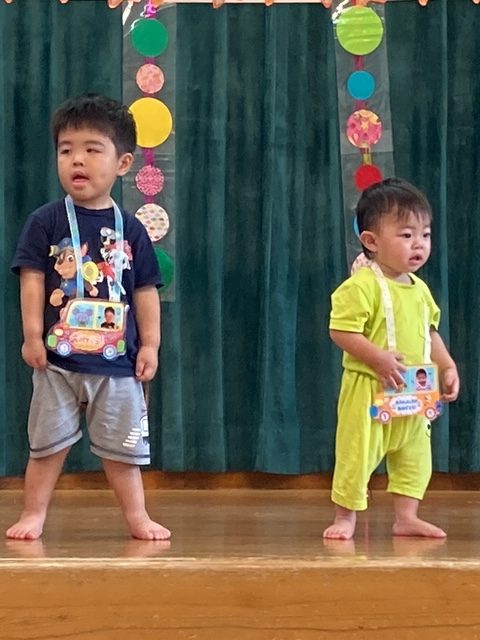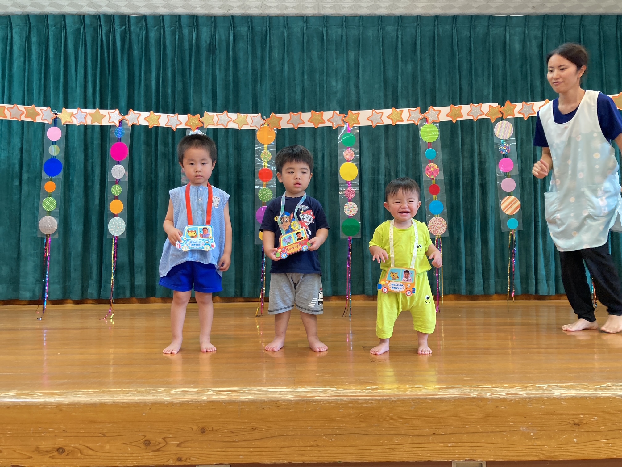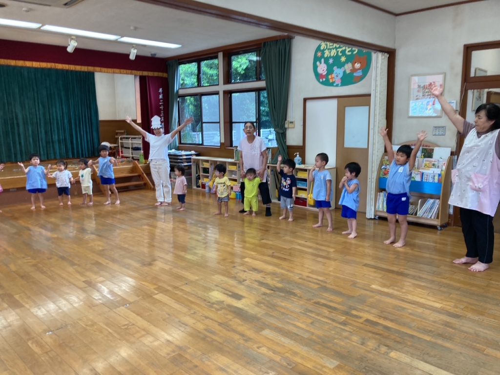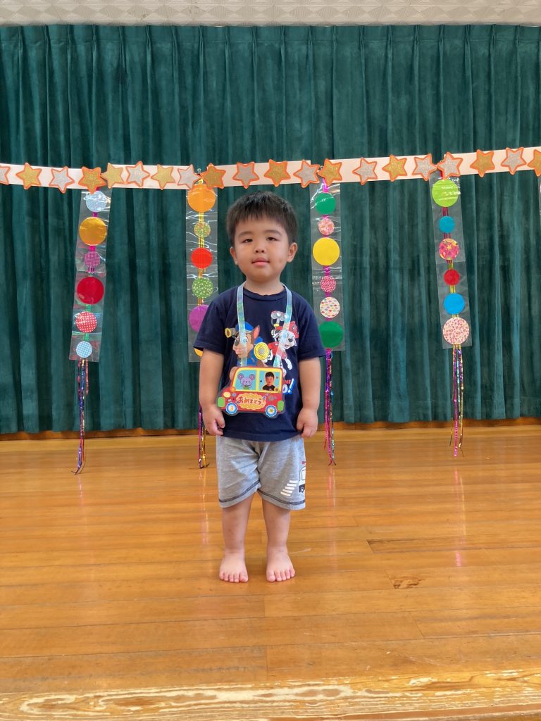 8月の誕生会、今月は3人のお友だちが誕生日を迎えました。