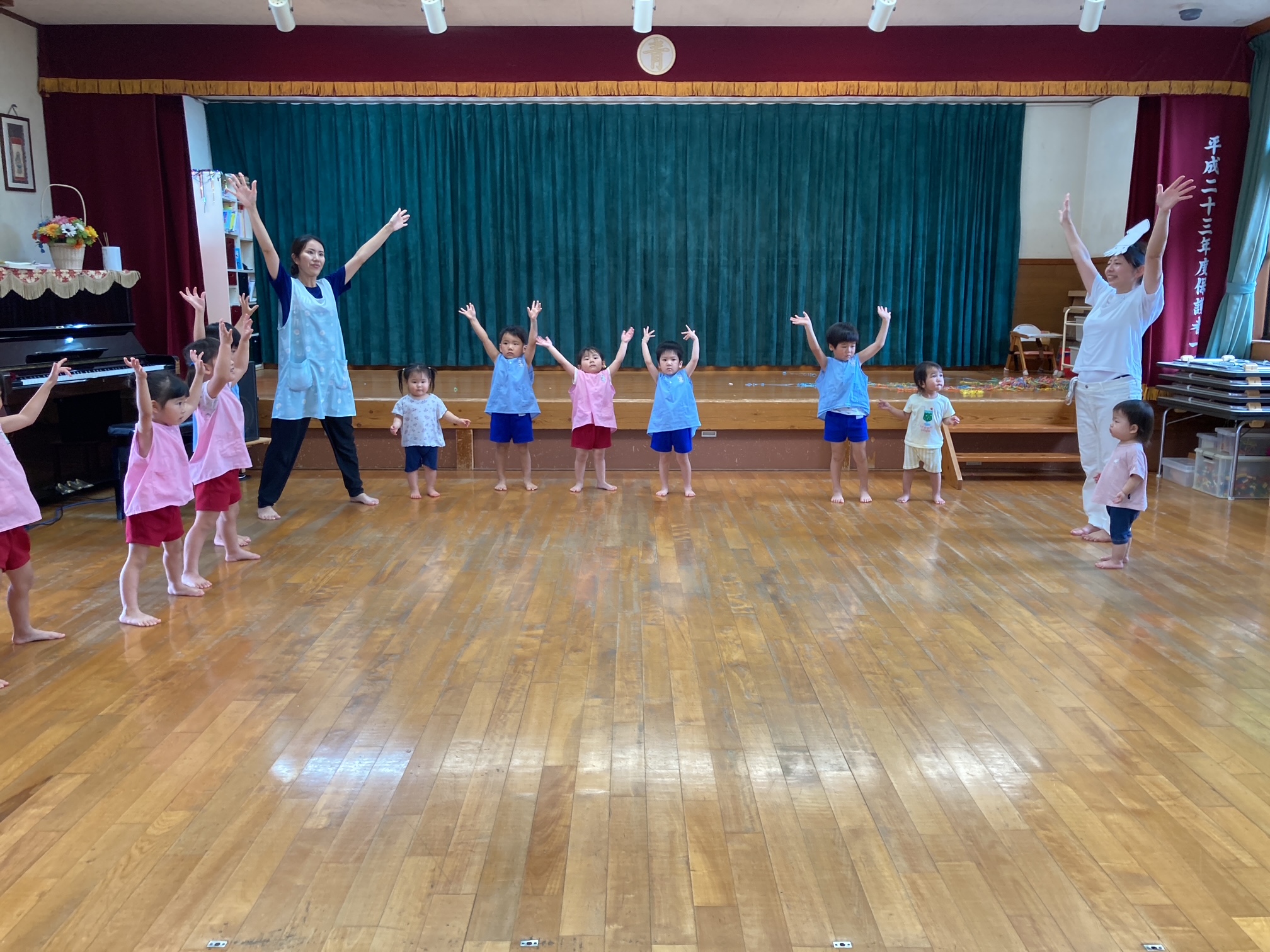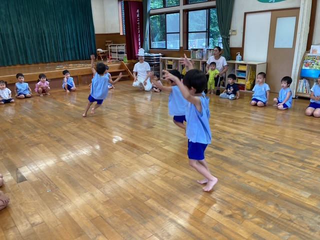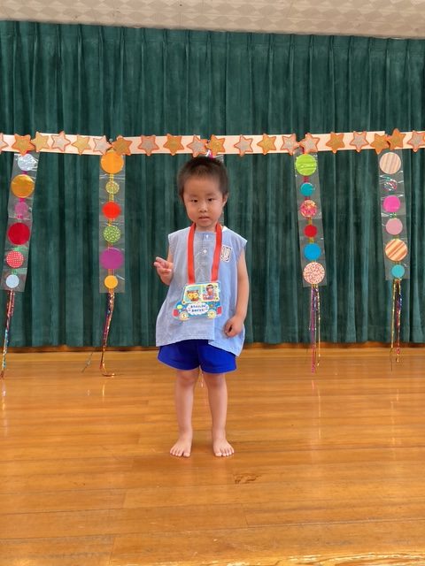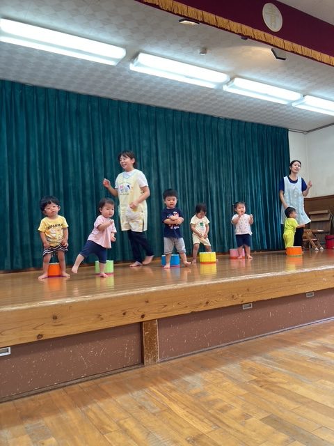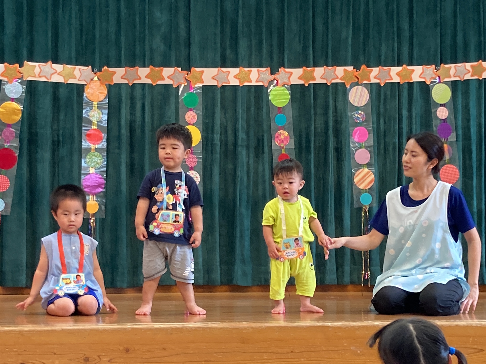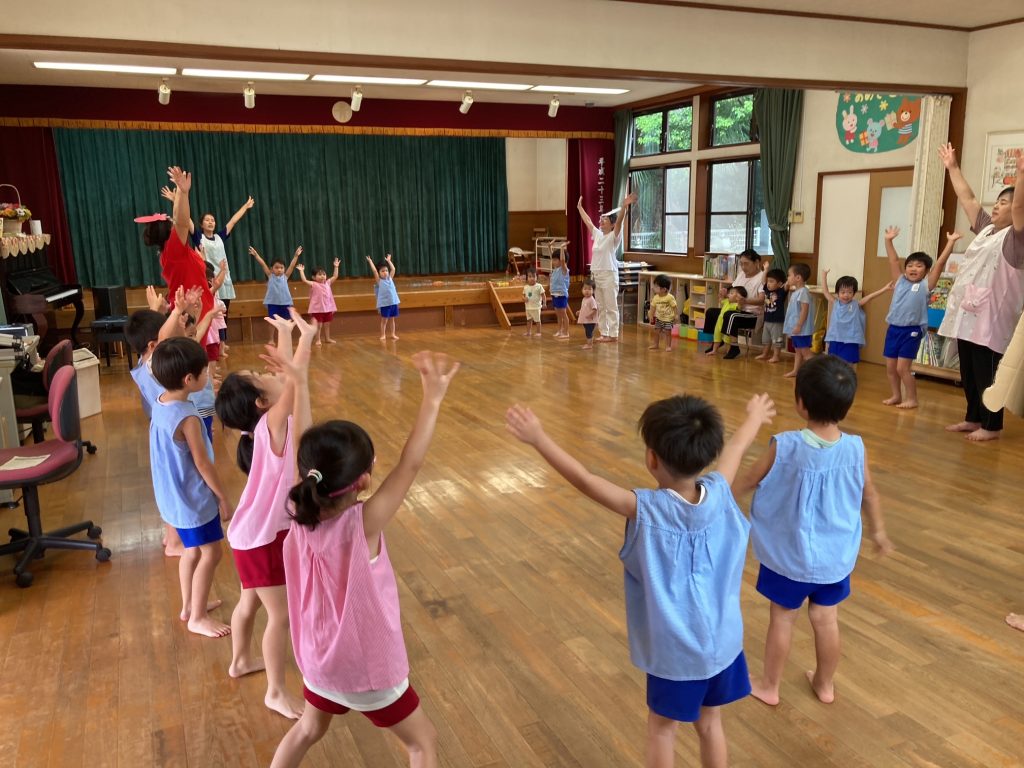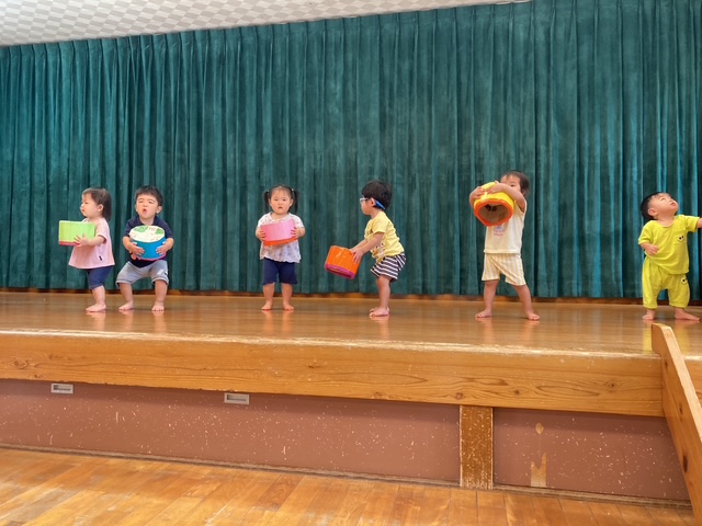 8月の誕生会、今月は3人のお友だちが誕生日を迎えました。
