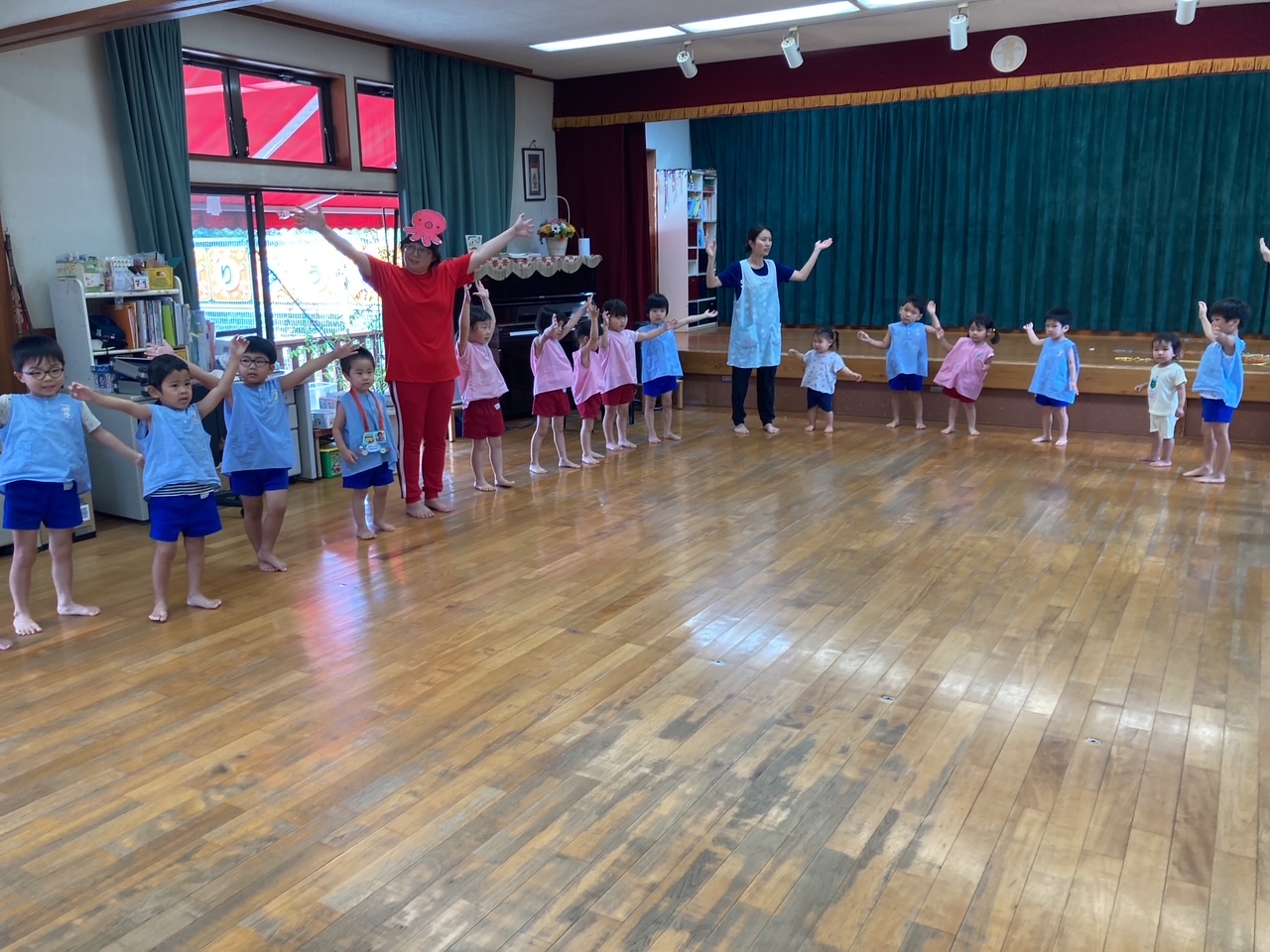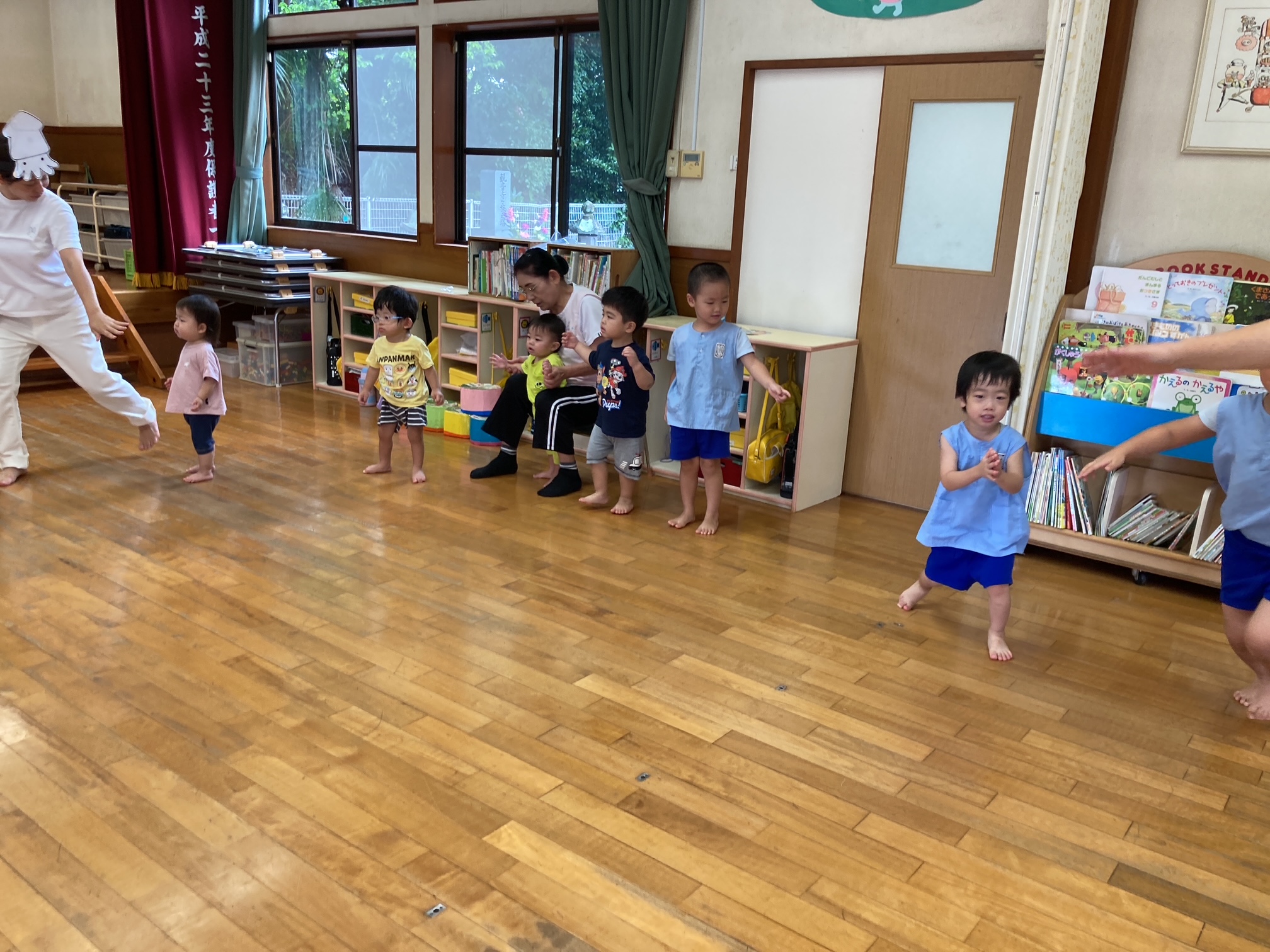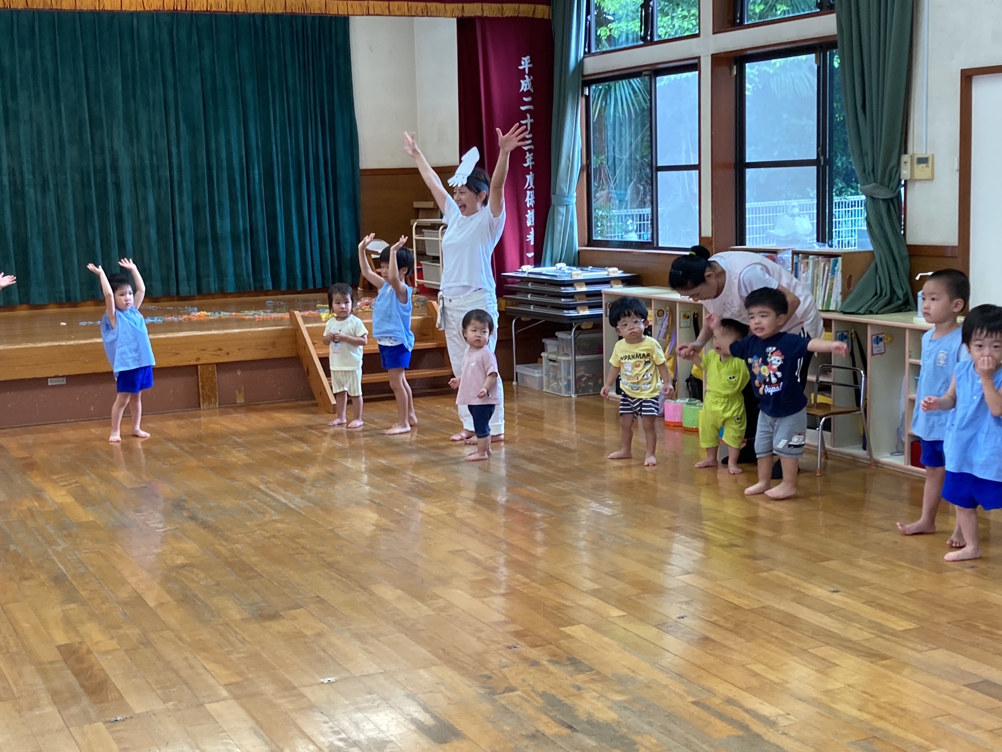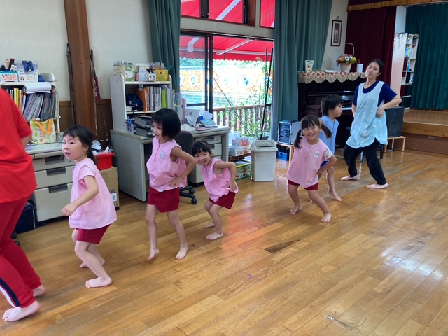 8月の誕生会、今月は3人のお友だちが誕生日を迎えました。