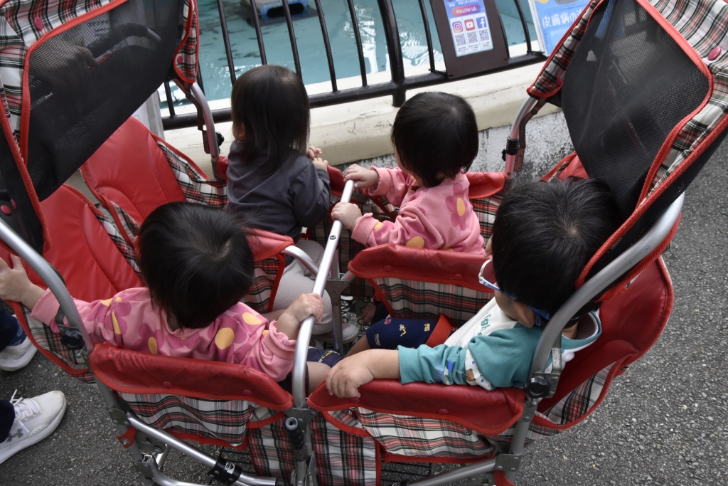 今日はちゅうりっぷ組さんともも組さんはバスに乗って大牟田動物園に行きました。