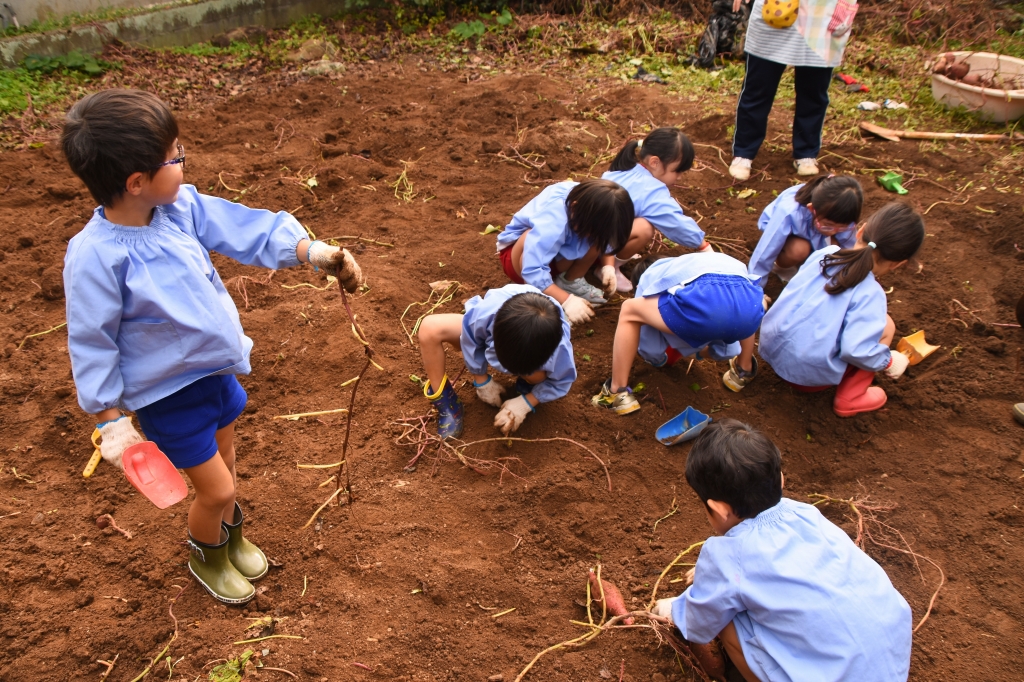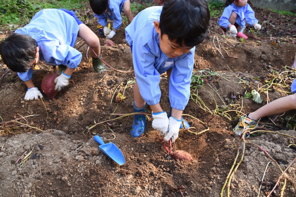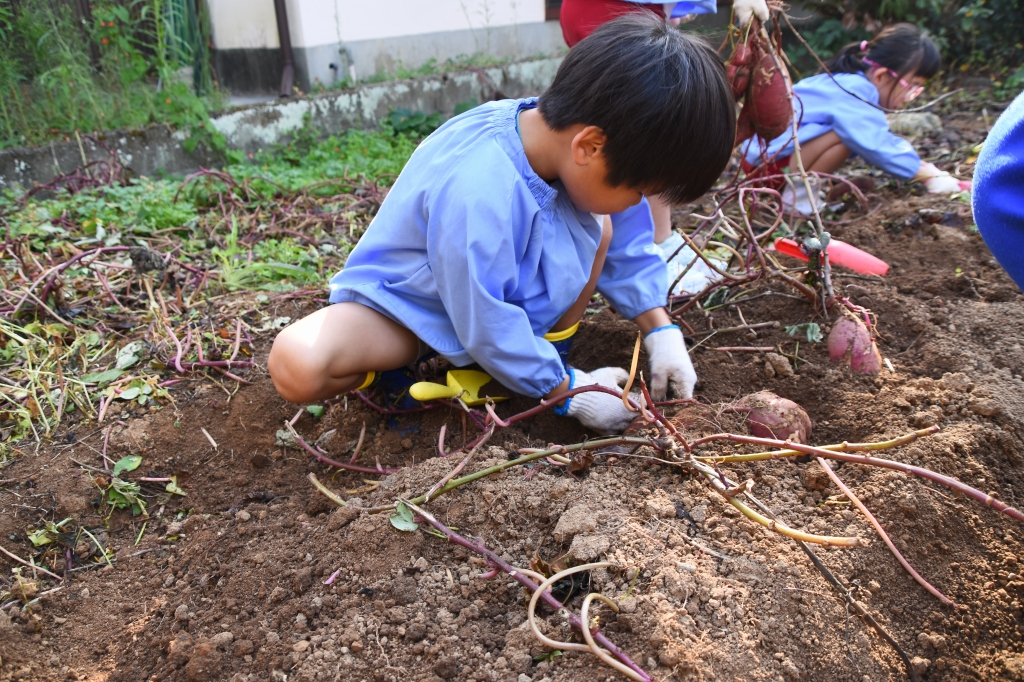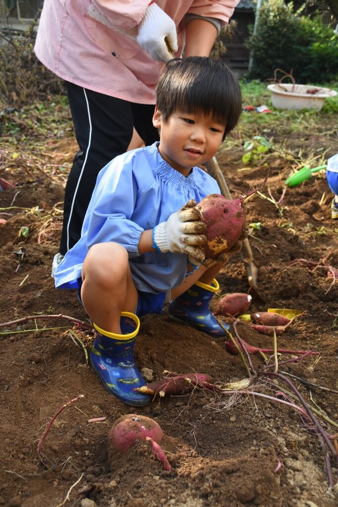 大きなさつま芋を手やスコップで上手に収穫できました!