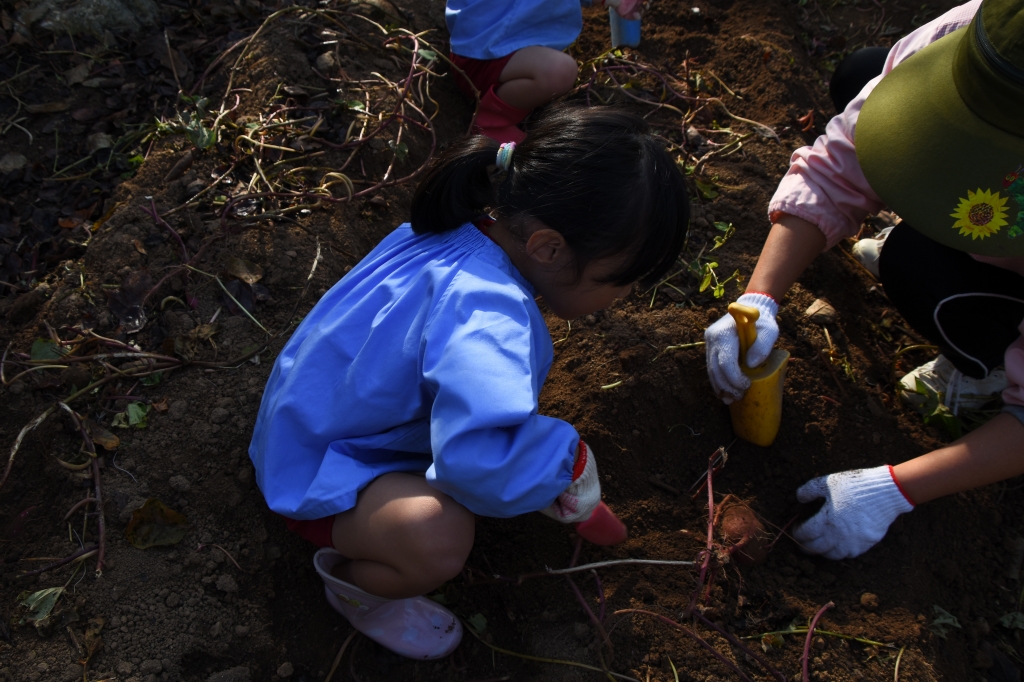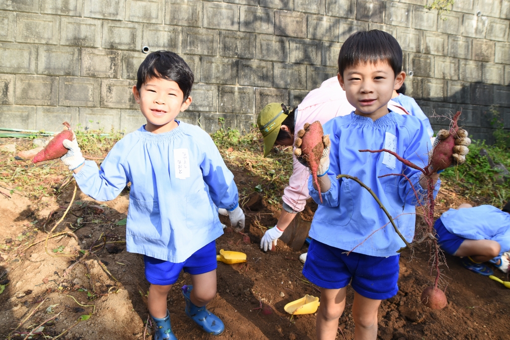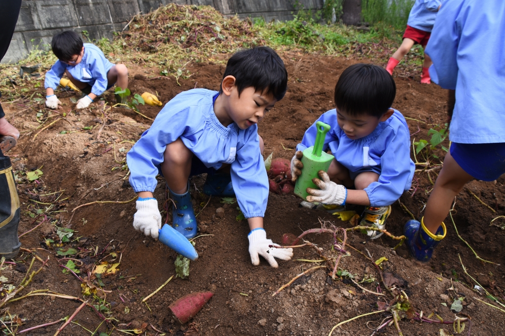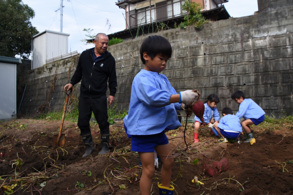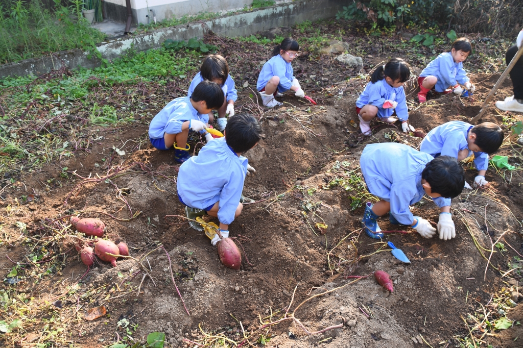 大きなさつま芋を手やスコップで上手に収穫できました!